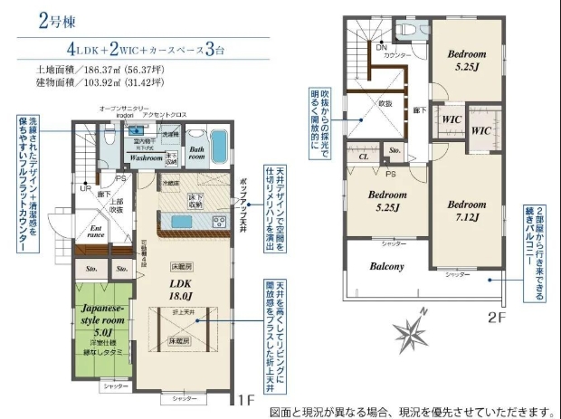 - 4LDK+WIC×2+玄関上部吹抜+カースペース3台