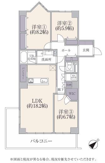 - 93.93㎡(28.41坪)バルコニ17.61㎡(5.33坪)5階部分